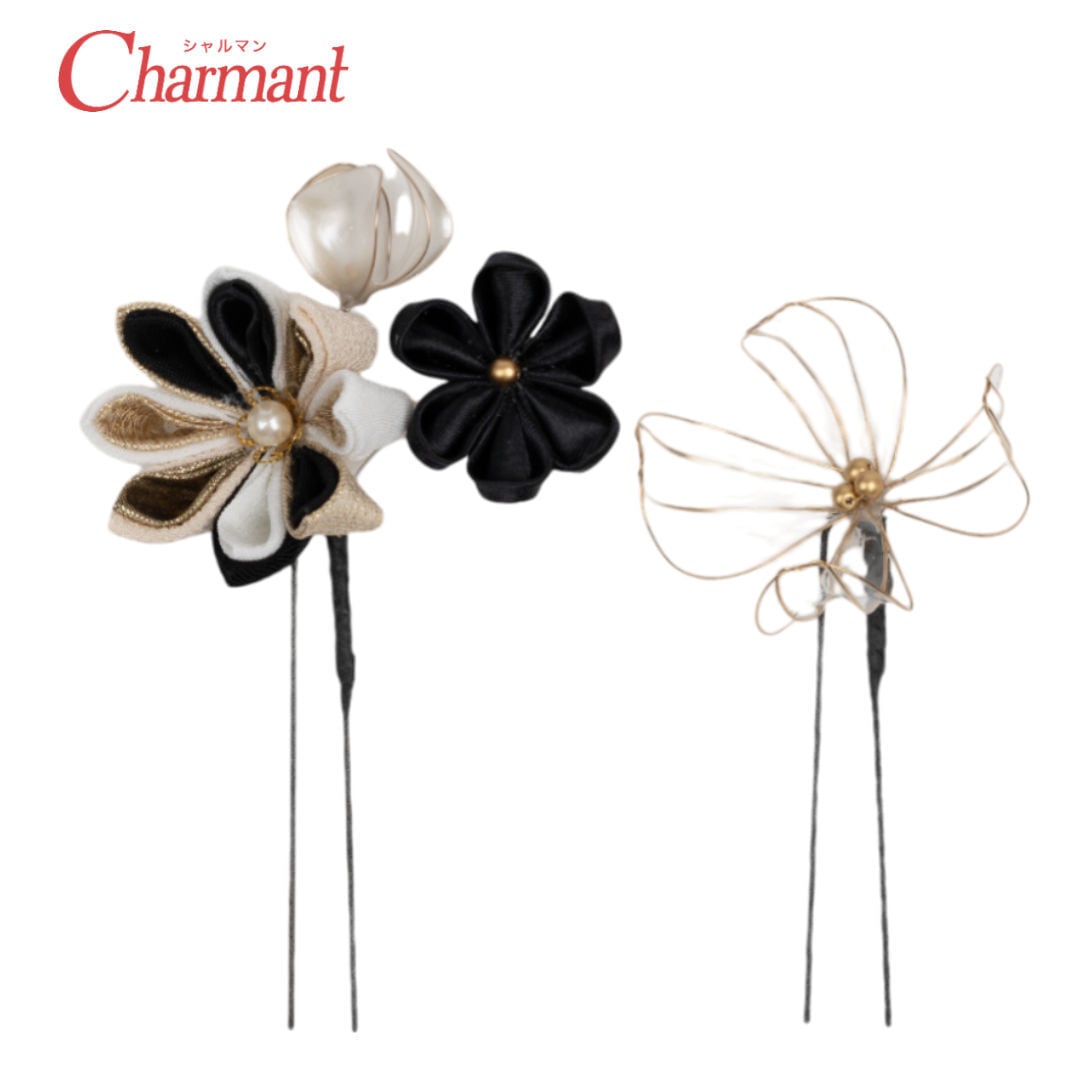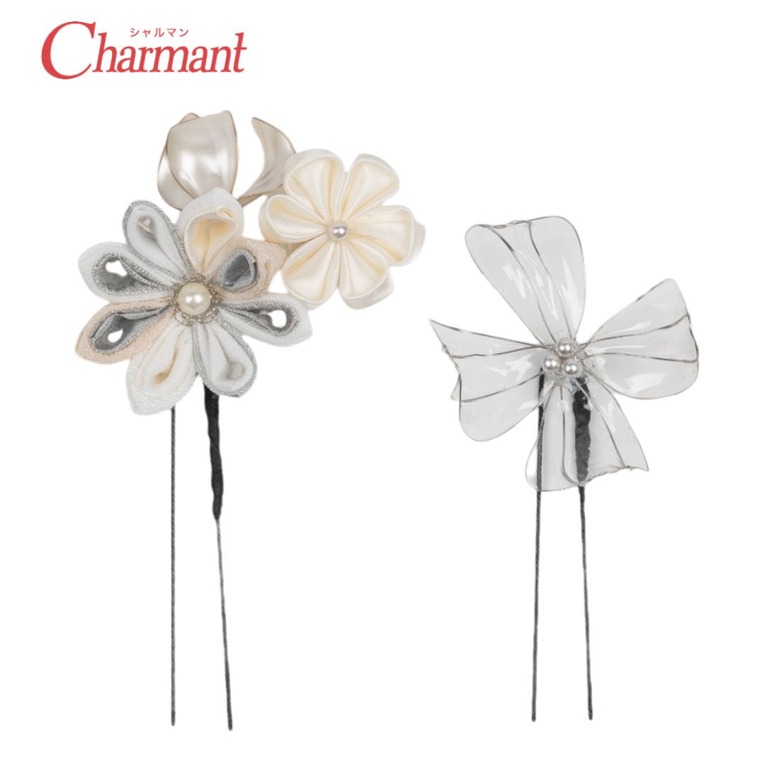 【400-913】髪飾り Uピン つまみ細工 水引 アメリカンフラワー 成人式 結婚式 卒業式 大人着物