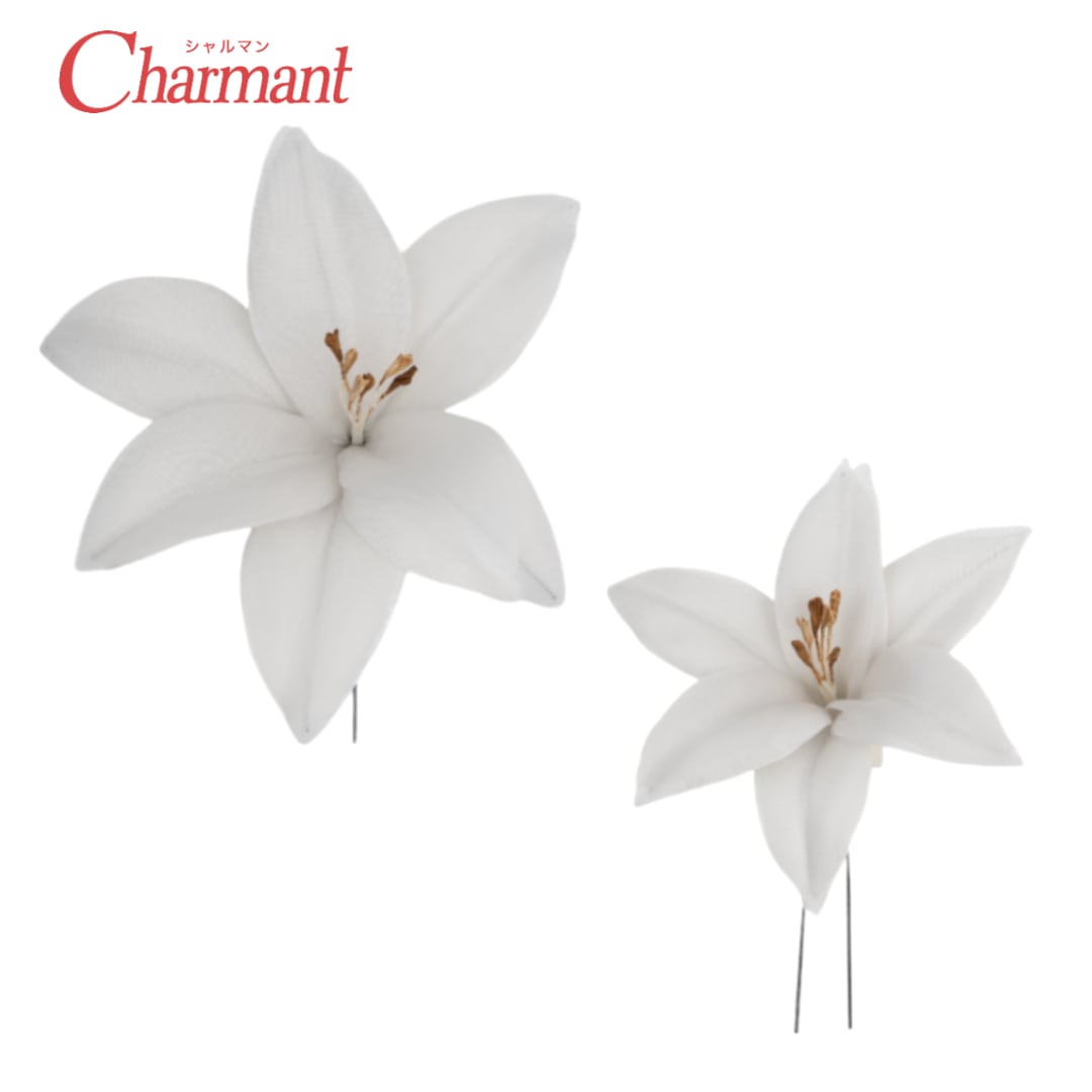 まるで生花のような百合と優しい色合いがエレガントな髪飾り