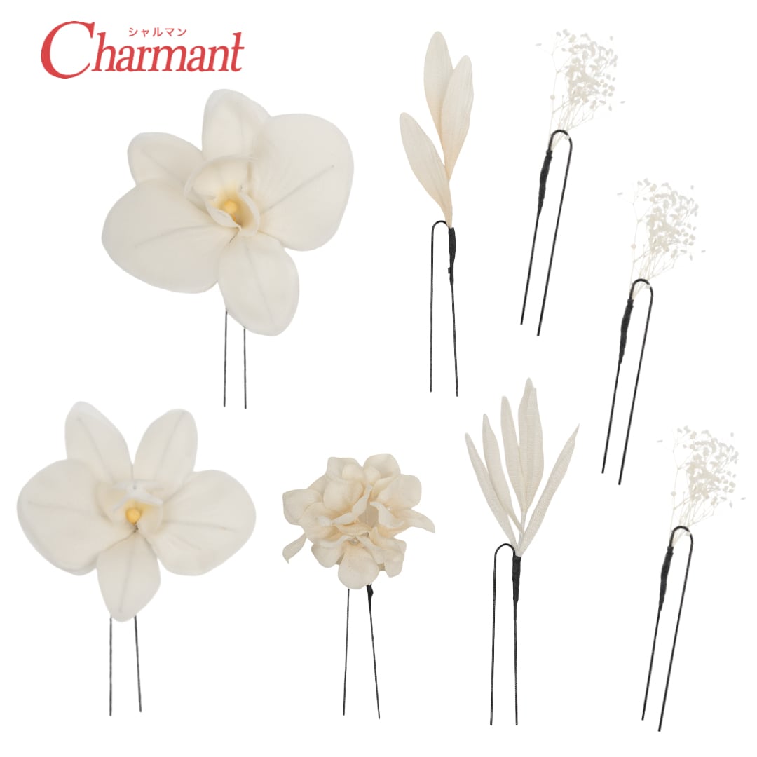 【400-984】シロ 髪飾り Uピン 胡蝶蘭 成人式 結婚式 卒業式 大人着物