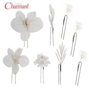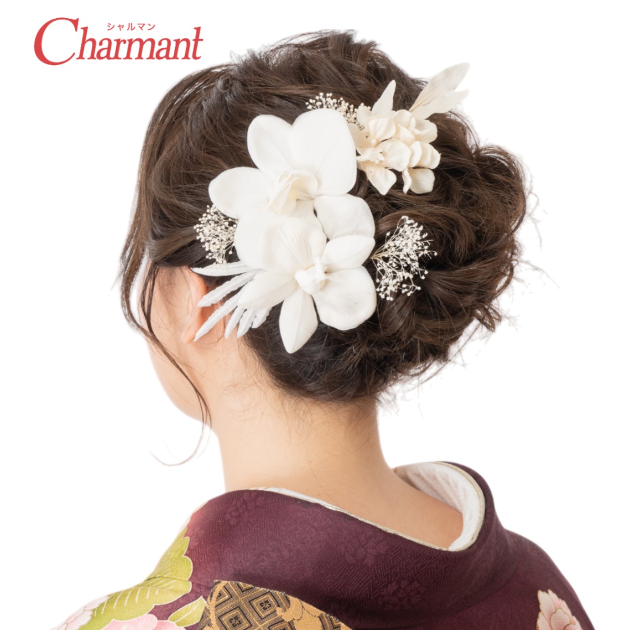 まるで生花のような胡蝶蘭と優しい色合いがエレガントな髪飾り