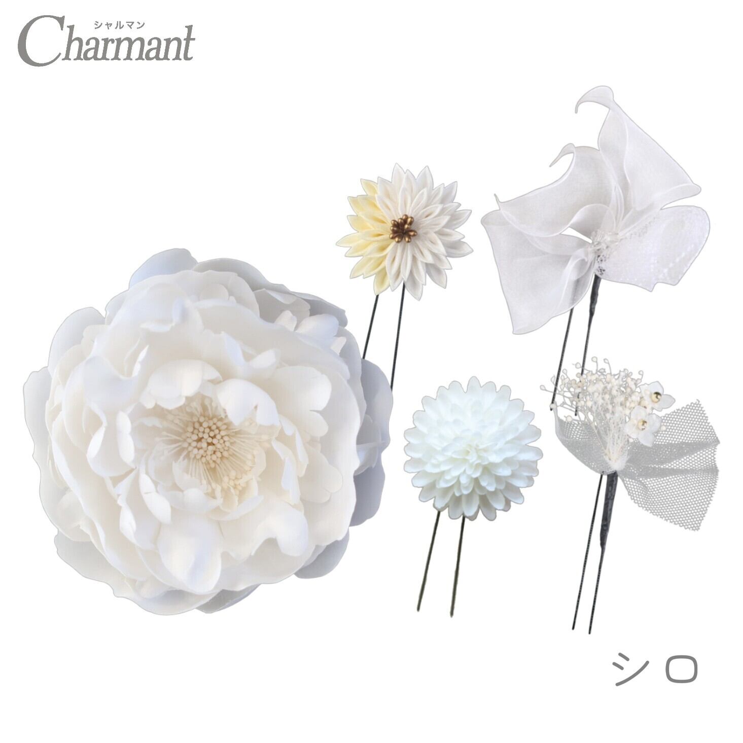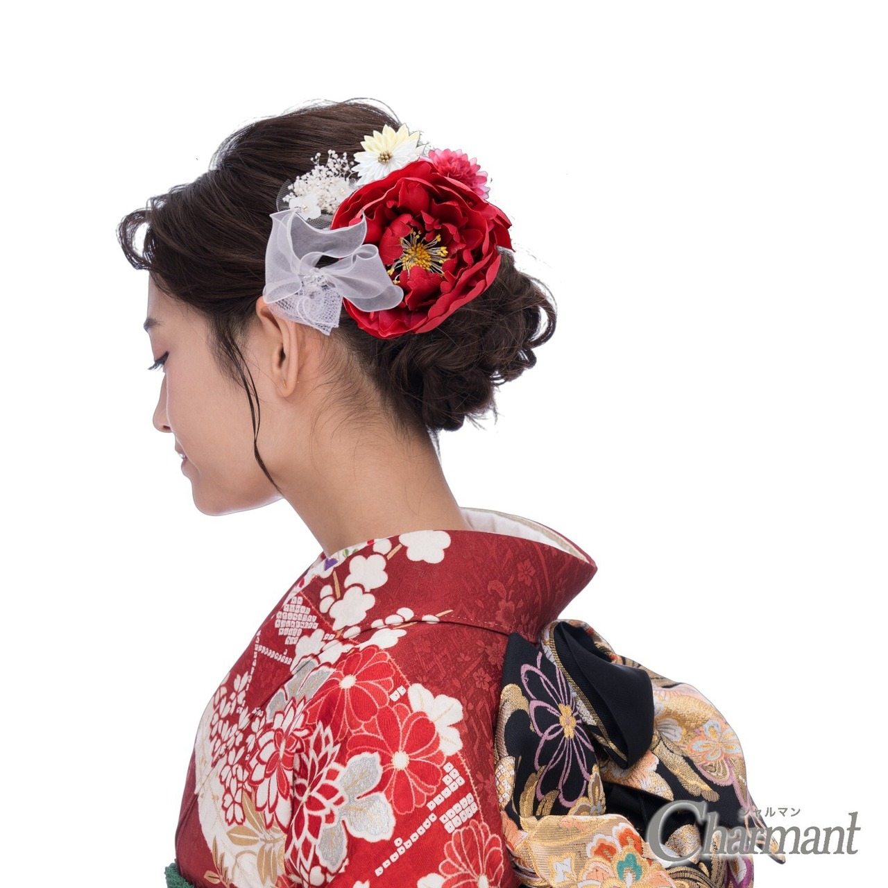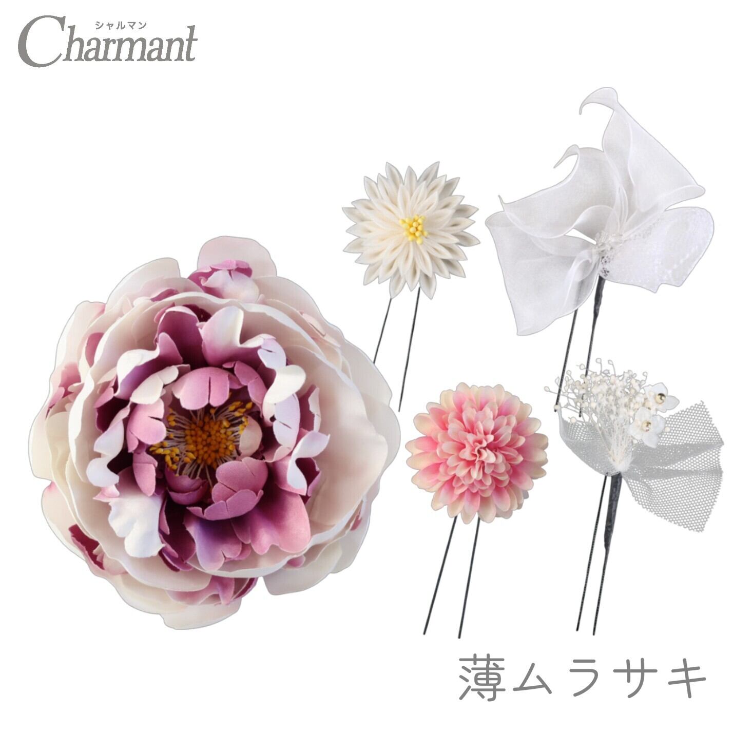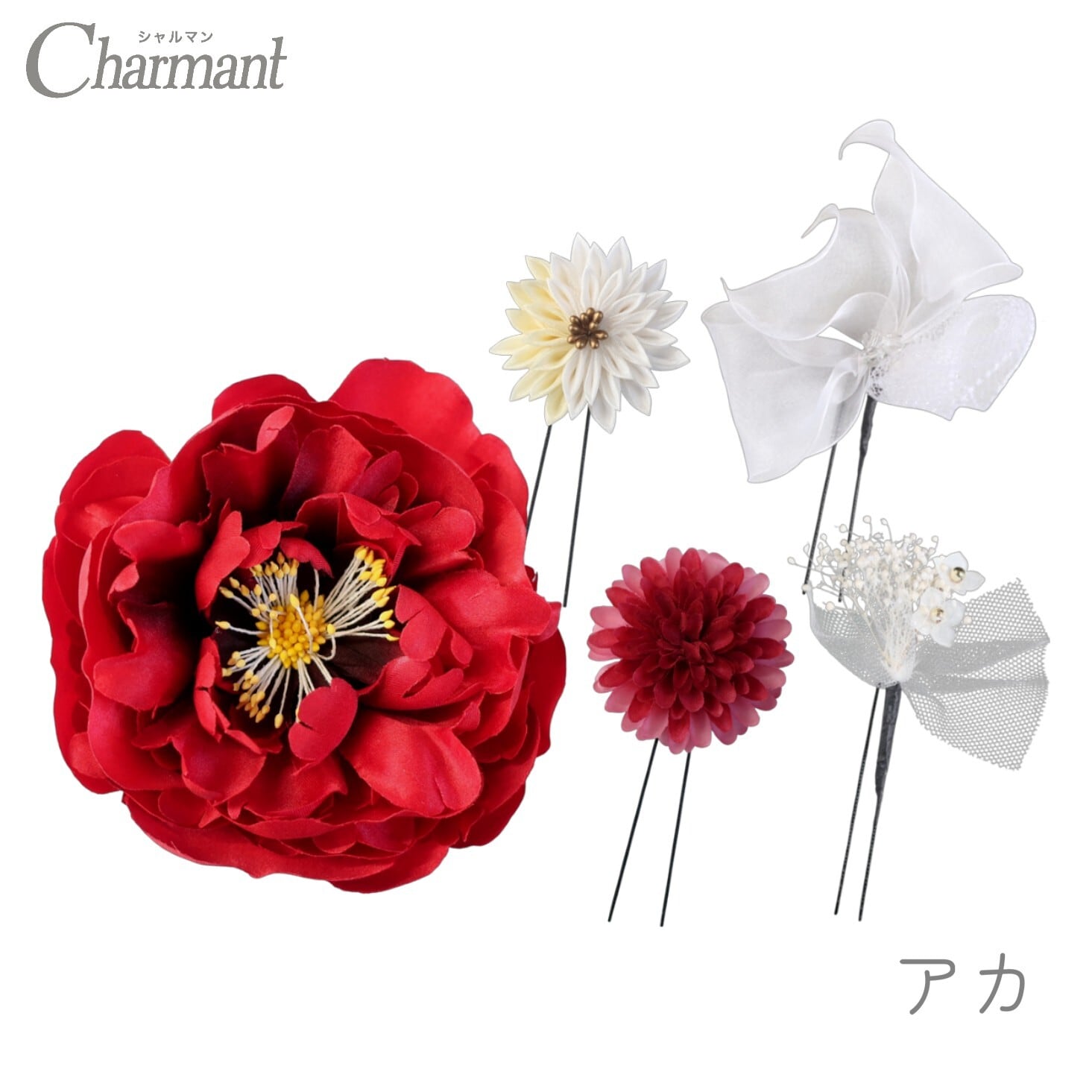 華やかな牡丹の飾りがハレの日にふさわしい、つまみ細工とお花のUピンセット
