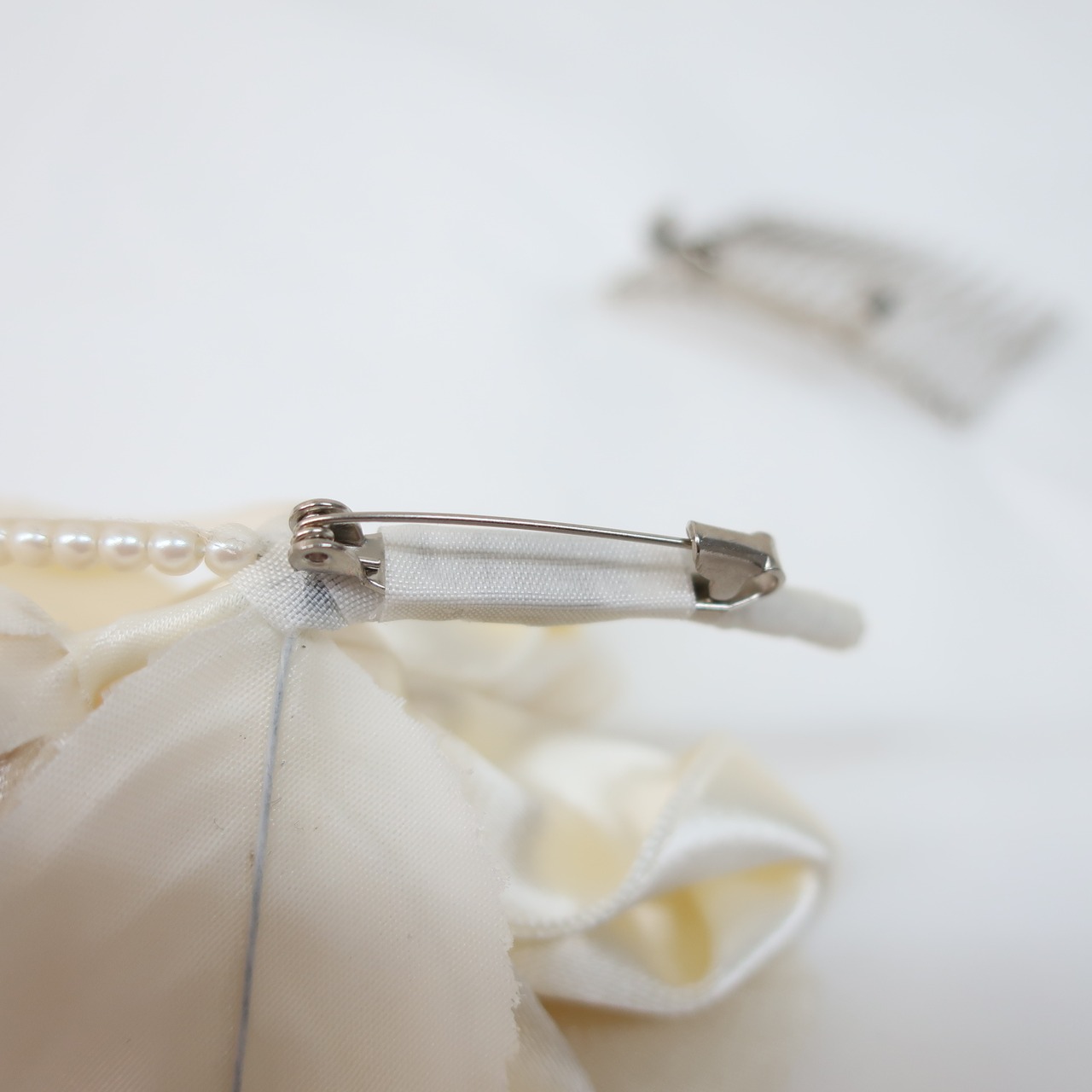 レーヨンとポリエステル素材による上品な光沢が特徴のコサージュ