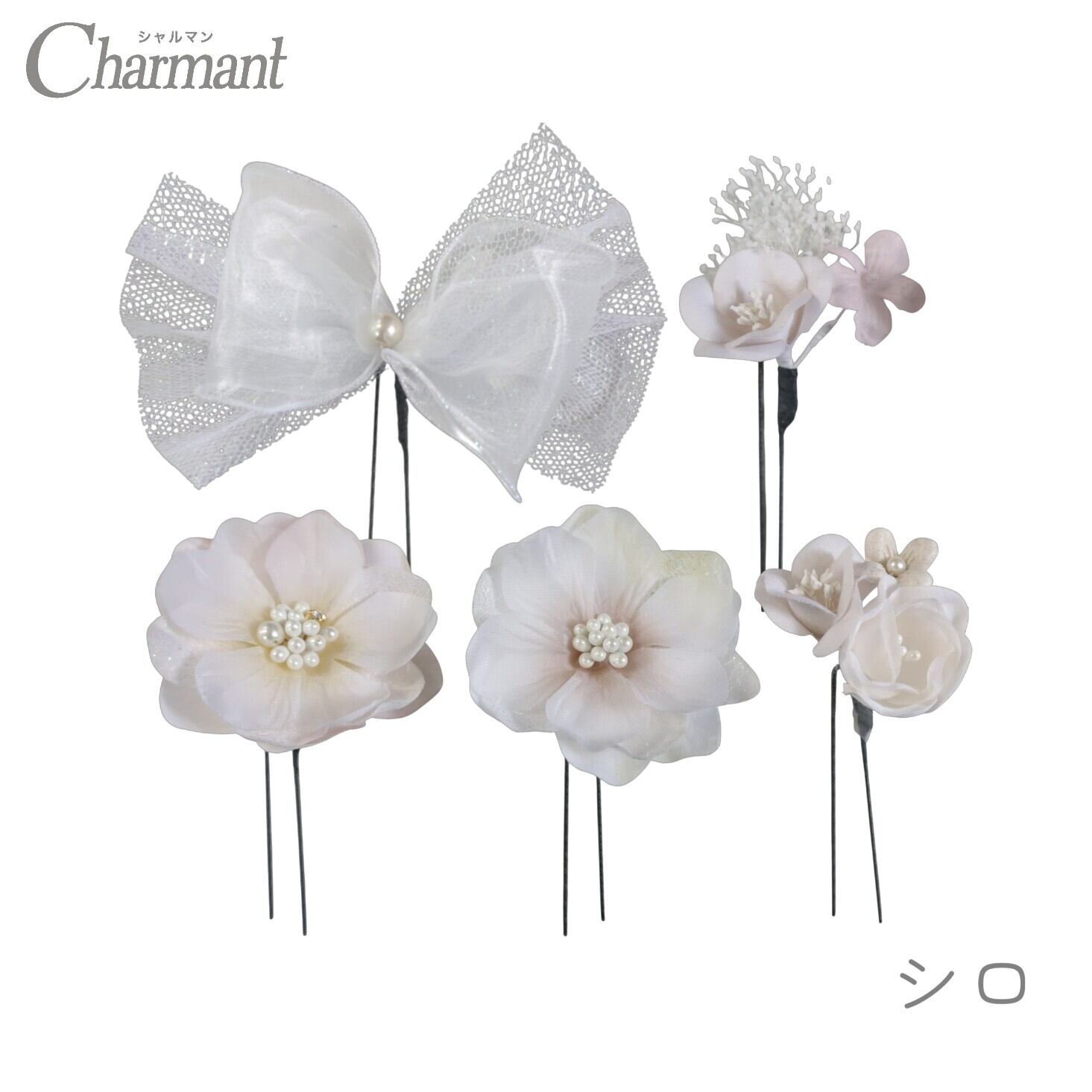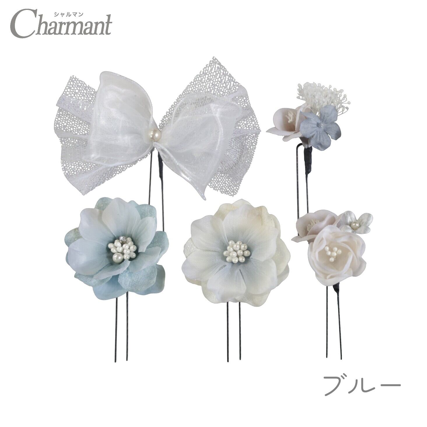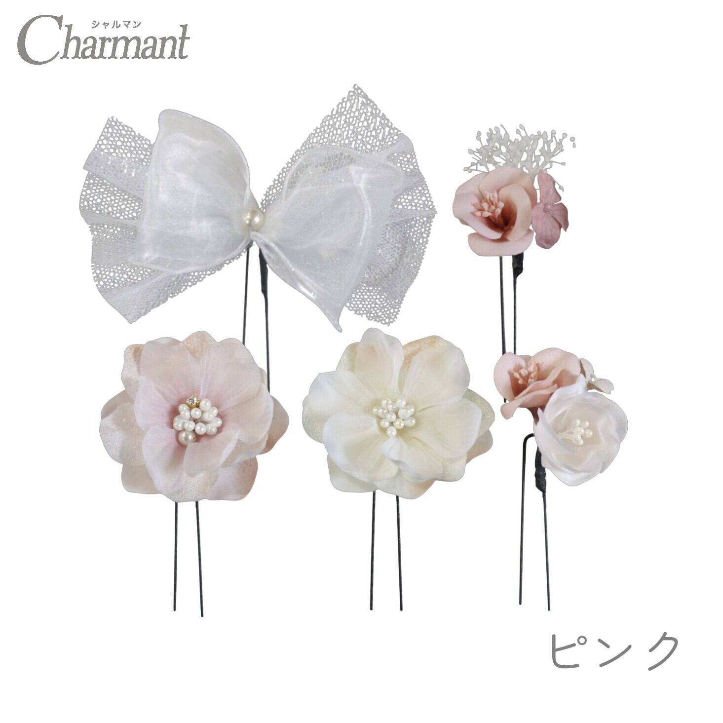 Uピン5本セットなので、ボリューム感の調節や付け方でアレンジが楽しめる飾りです