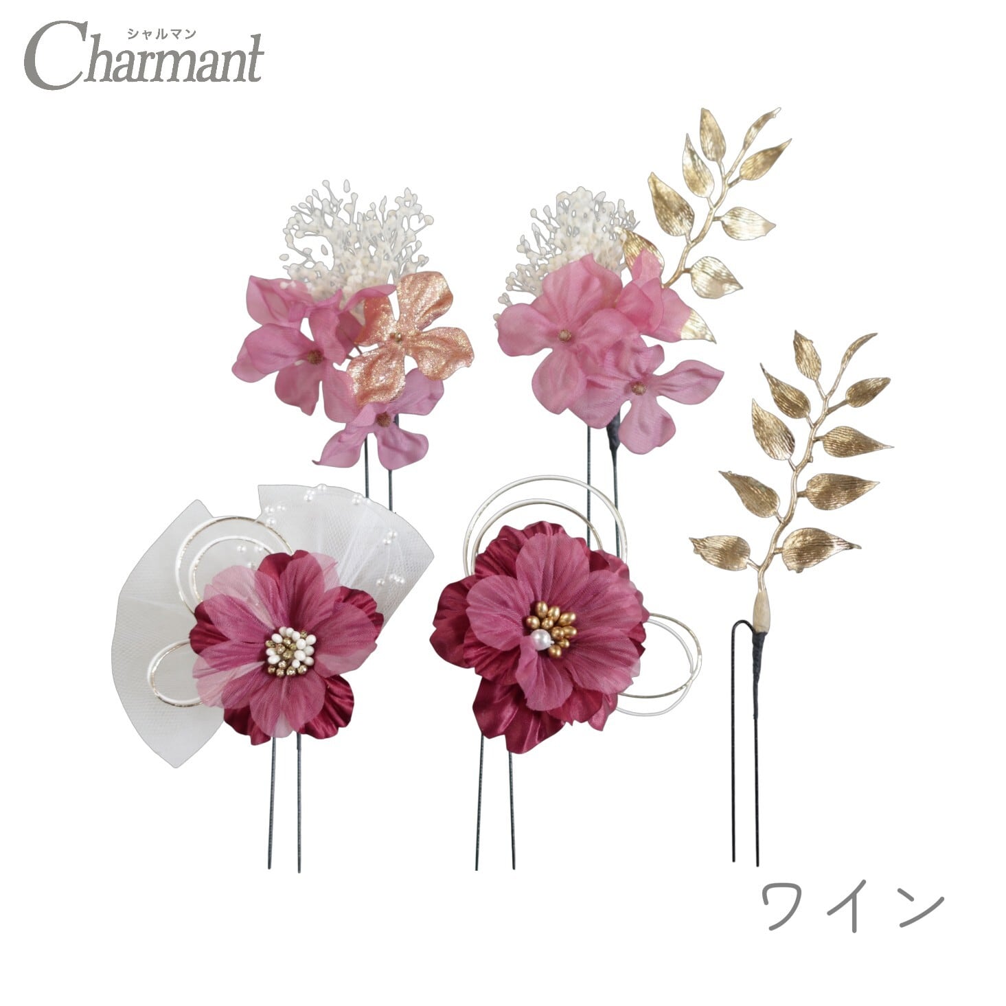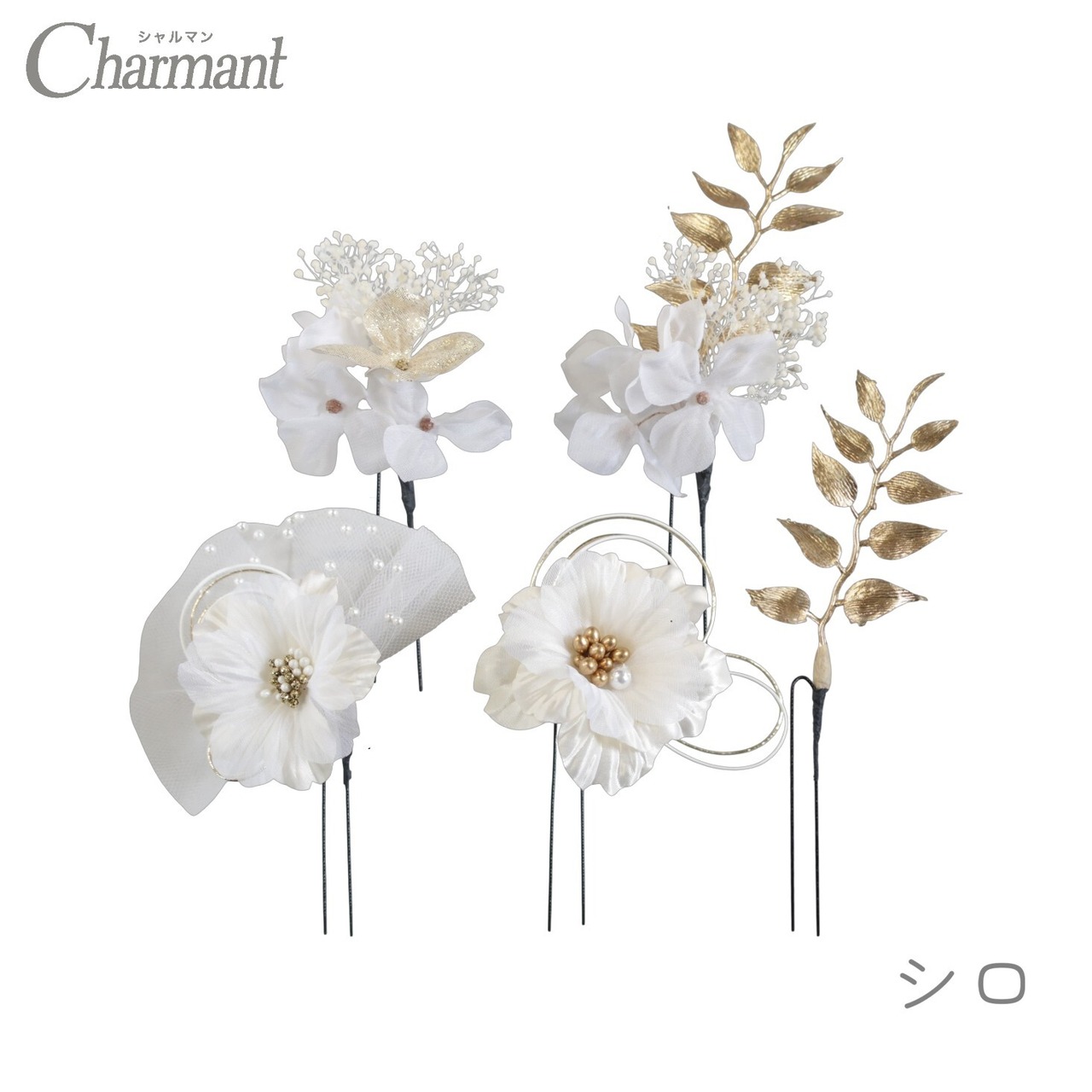 Uピン5本セットなので、ボリューム感の調節や付け方でアレンジが楽しめる飾りです