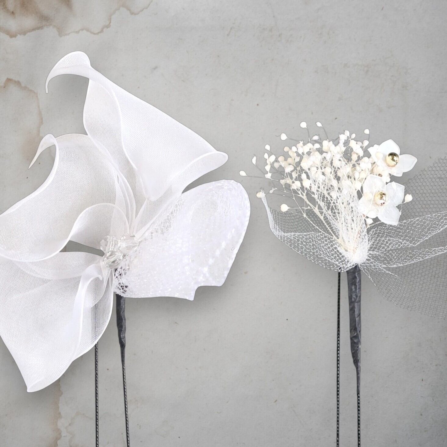チュールUピン:約8.5㎝x6㎝ / カスミ草Uピン:約6㎝x6㎝