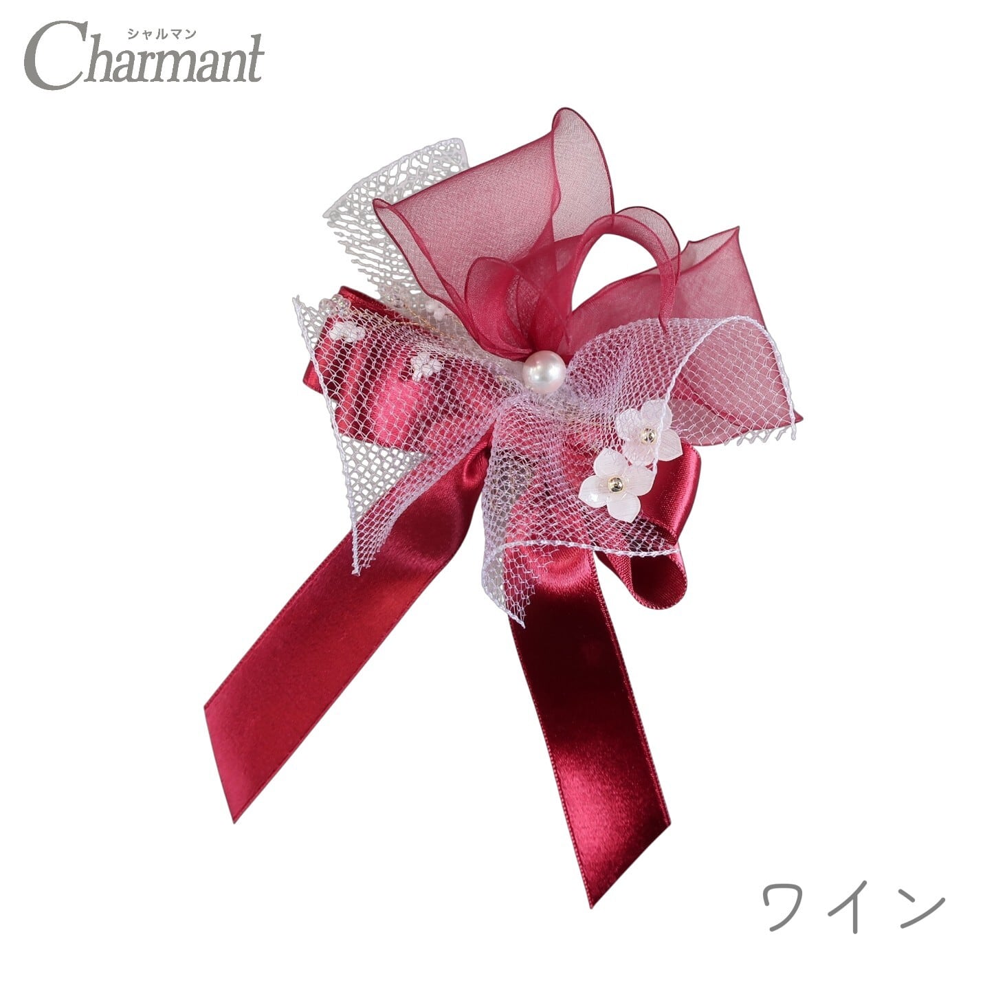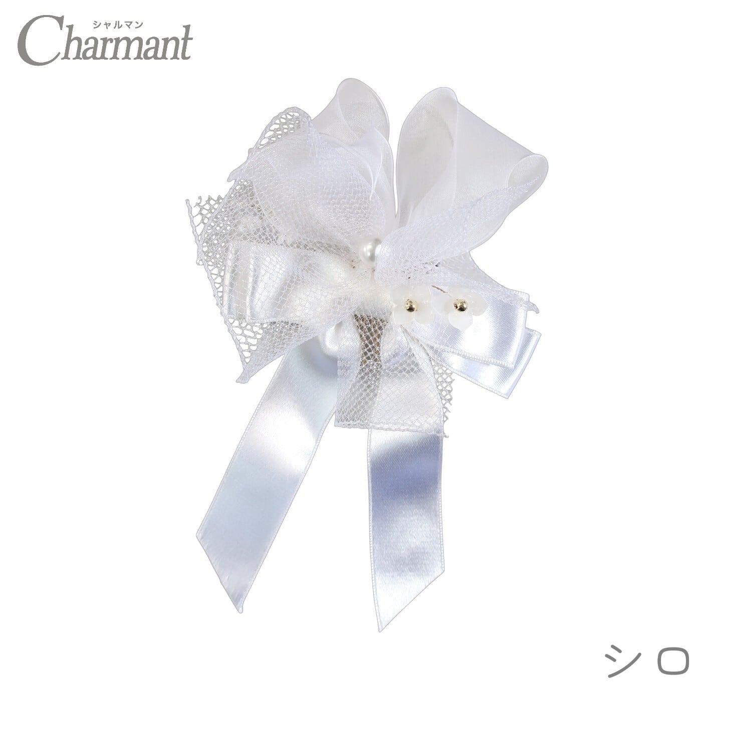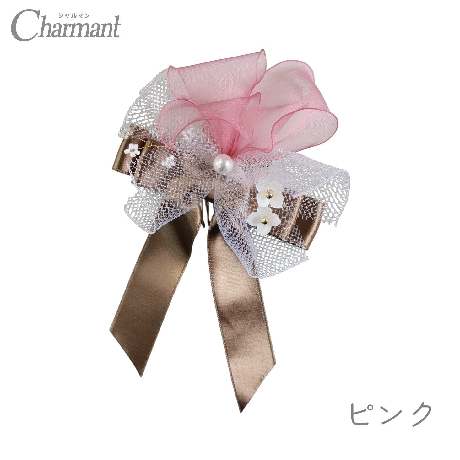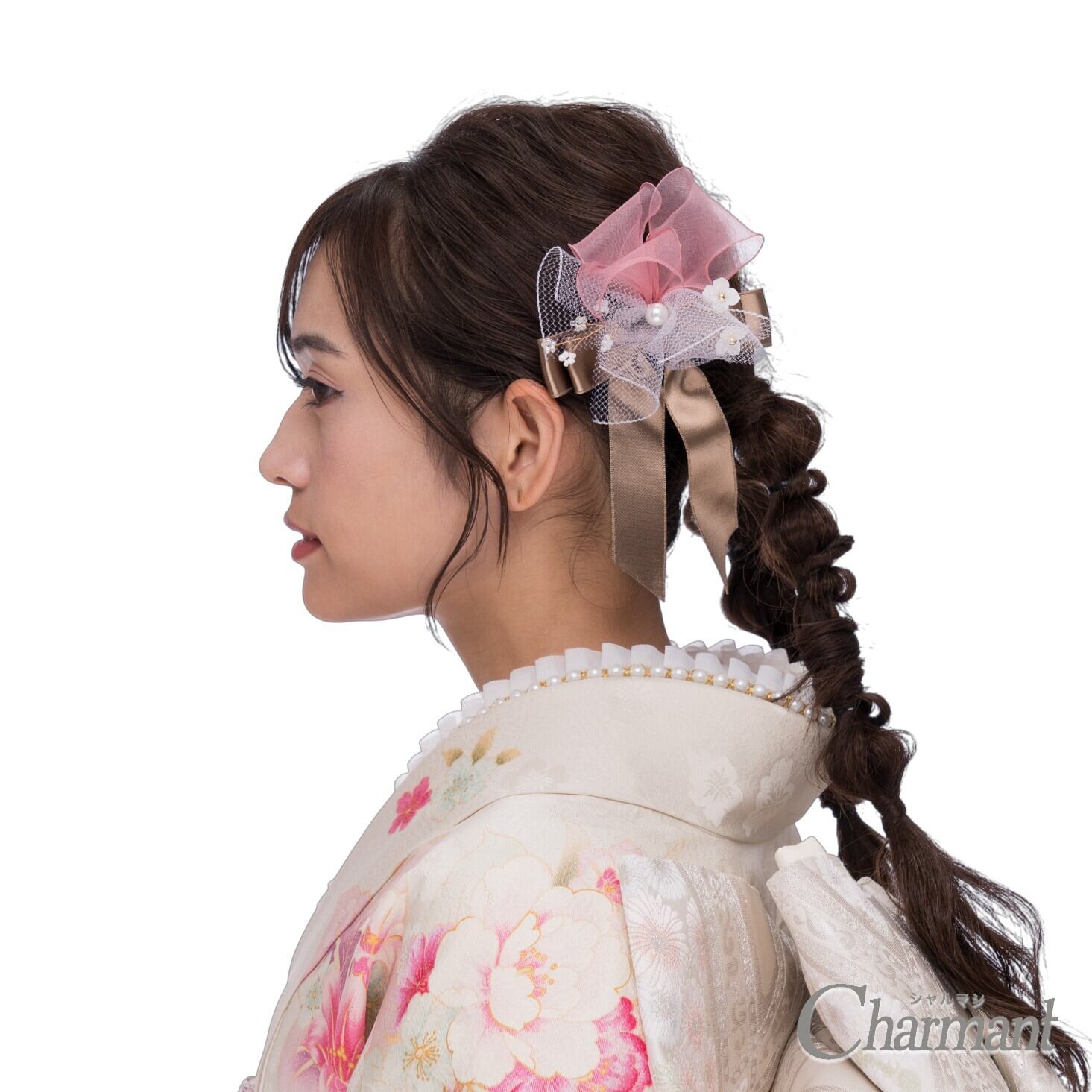 ふわふわのオーガンジーと、艶やかなサテンを重ねた愛らしいリボン飾り