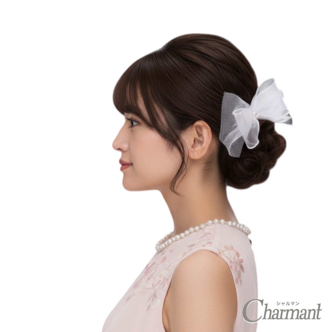 ふんわり軽いオーガンジーリボンで、やさしく華やかなヘアスタイルに仕上がります