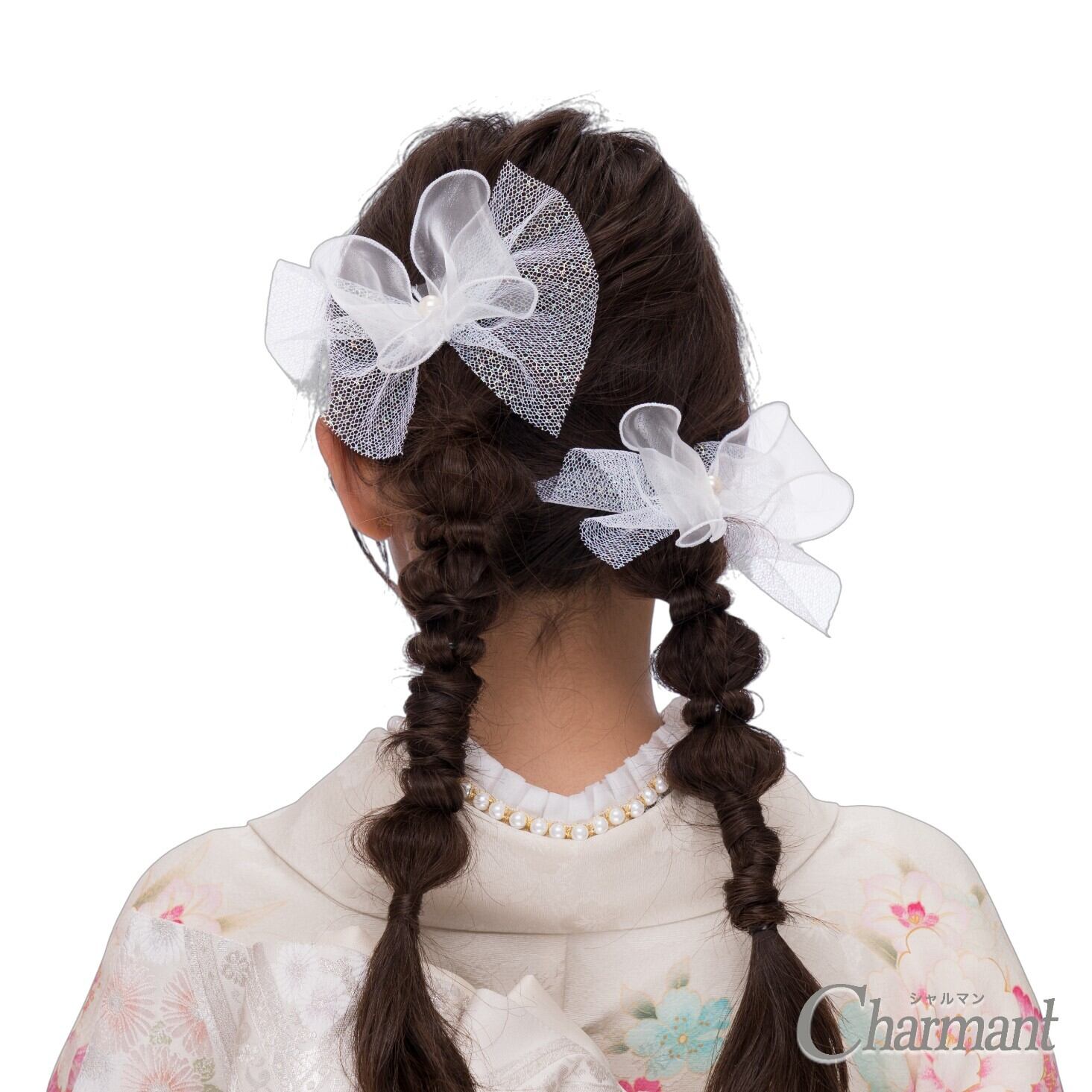 ふんわり軽いオーガンジーリボンで、やさしく華やかなヘアスタイルに仕上がります