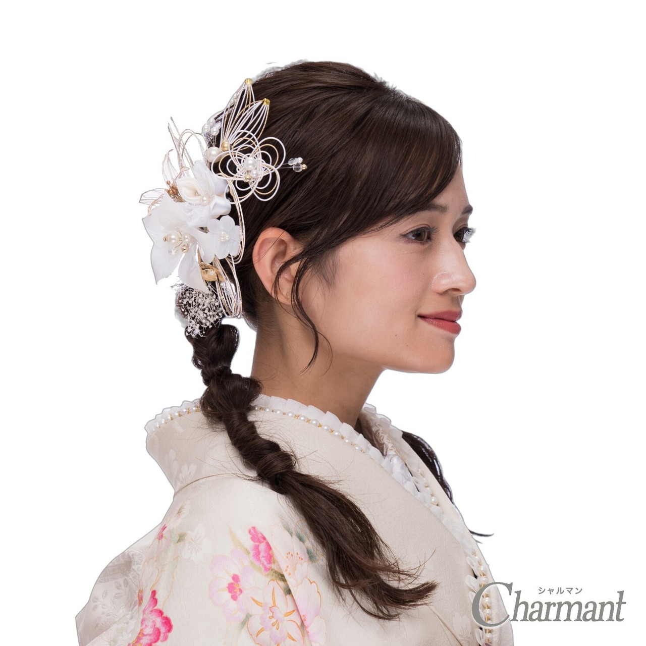 さりげなくあしらったつまみ細工や繊細な水引細工はお着物にもよく合います