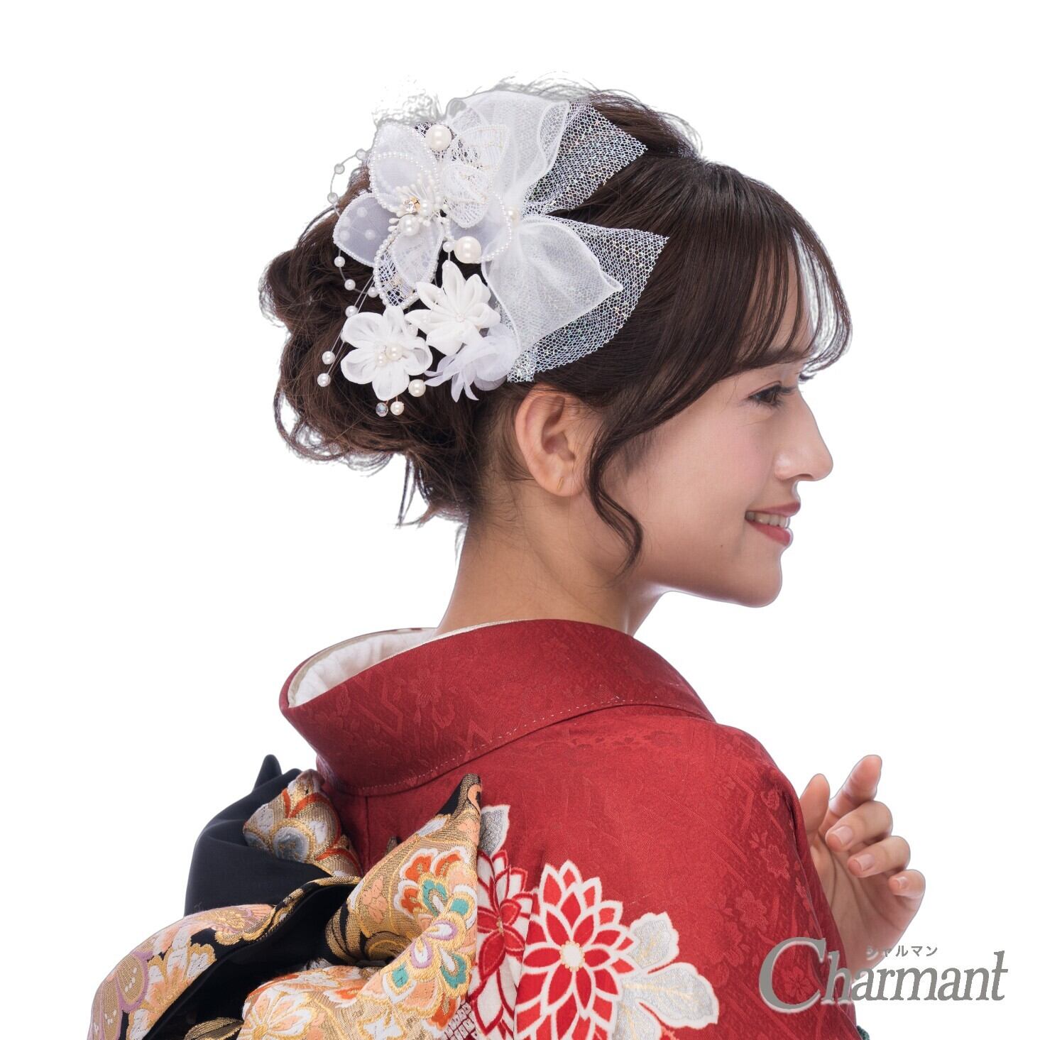 和装に洋のエッセンスをプラスした、可憐でロマンティックな髪飾り