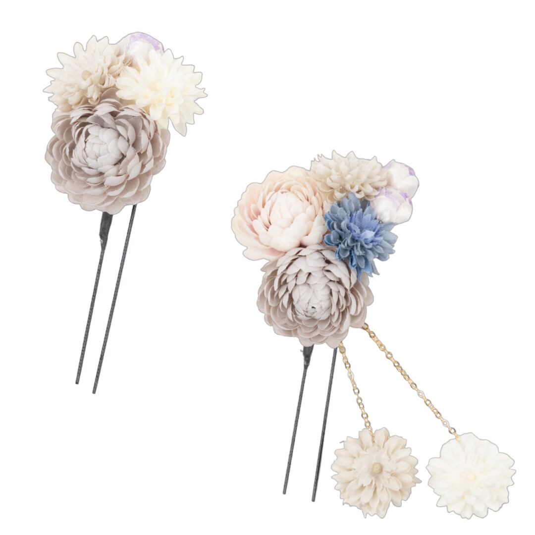 【400-702】グレー 髪飾り Uピンセット ぽんぽん菊 成人式 結婚式 卒業式