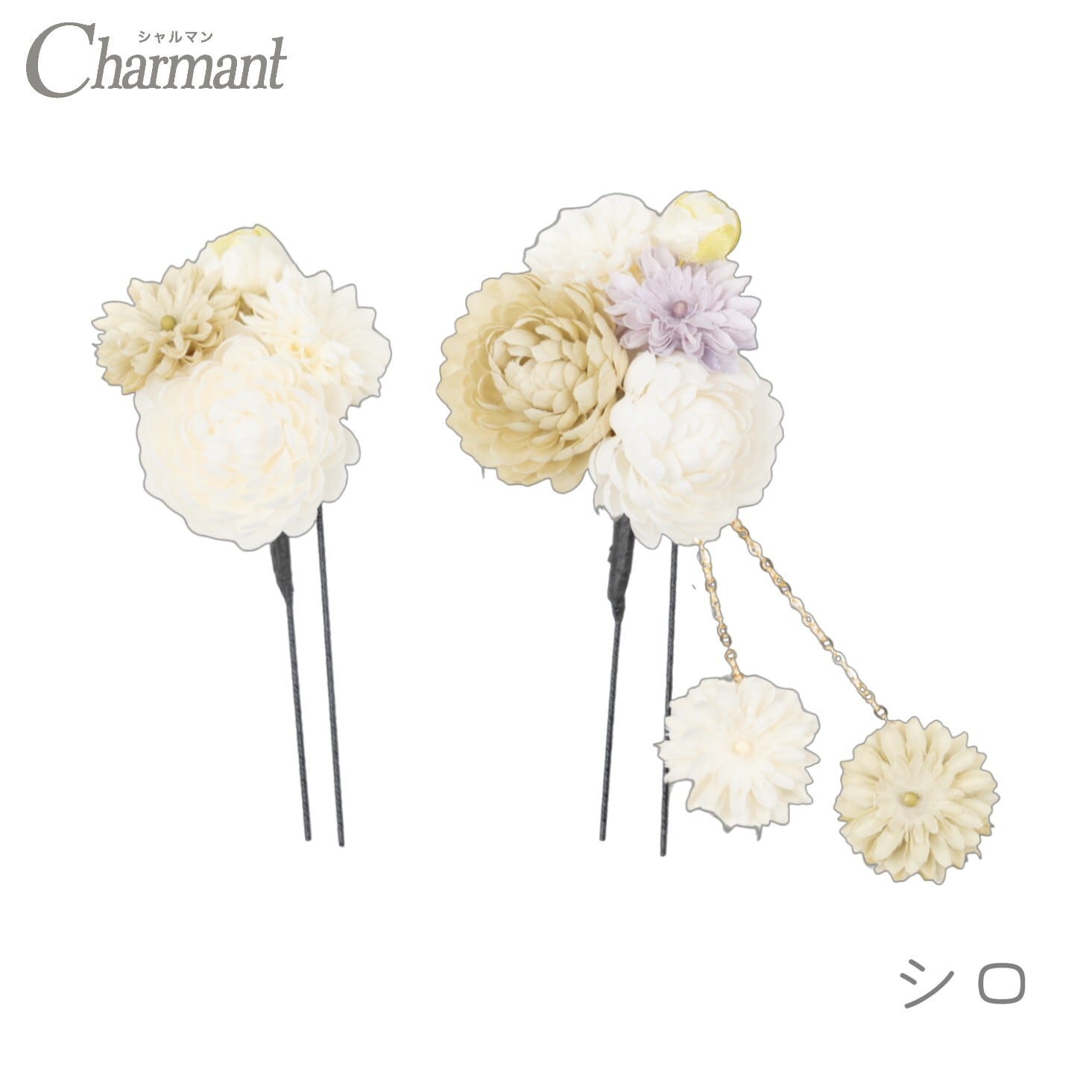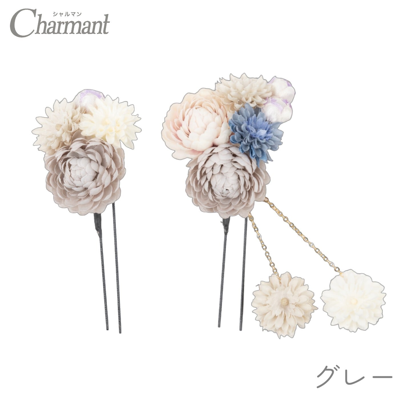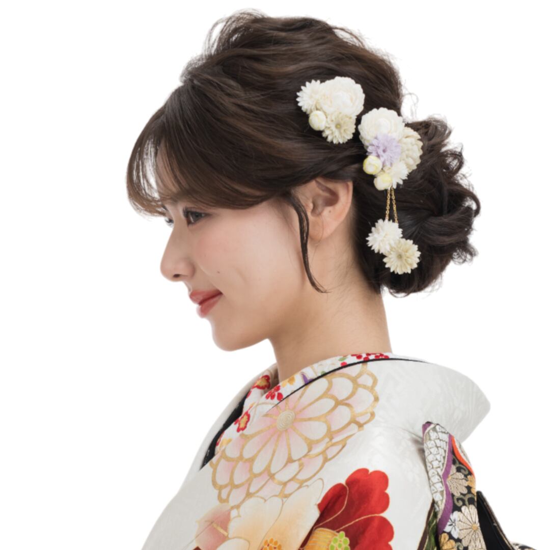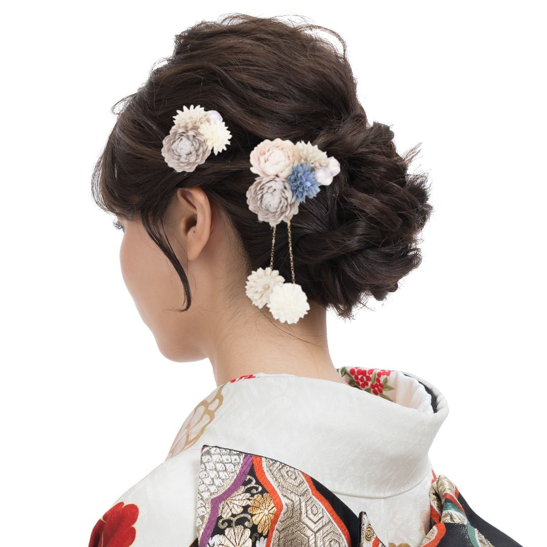 【400-702】髪飾り Uピン ぽんぽん菊 成人式 結婚式 卒業式