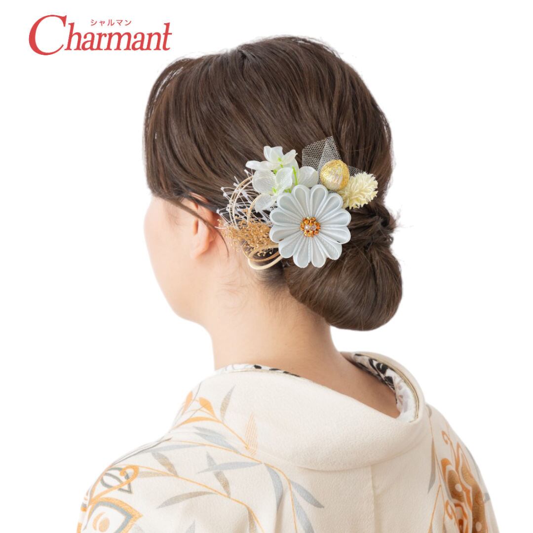 【500-928】グレー 髪飾り コーム 彩り つまみ細工 かすみ草 成人式 結婚式 卒業式 大人着物