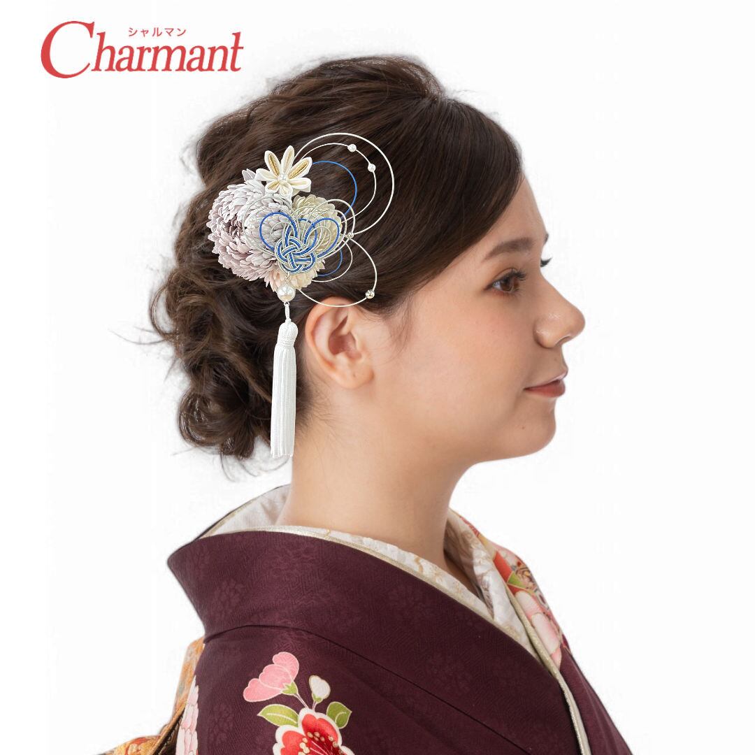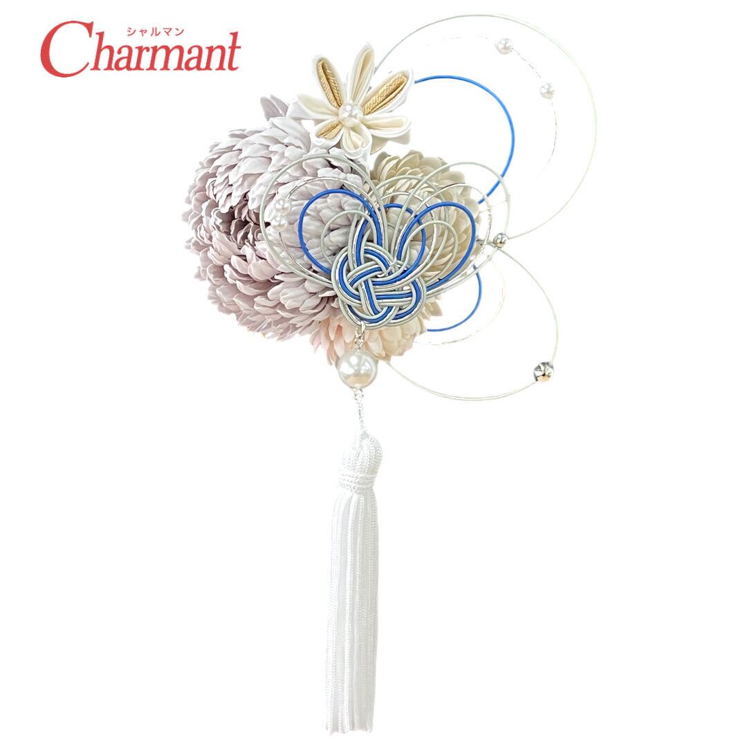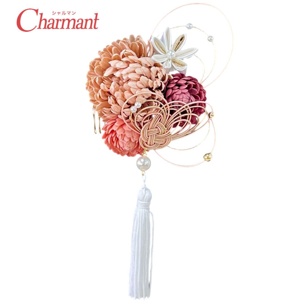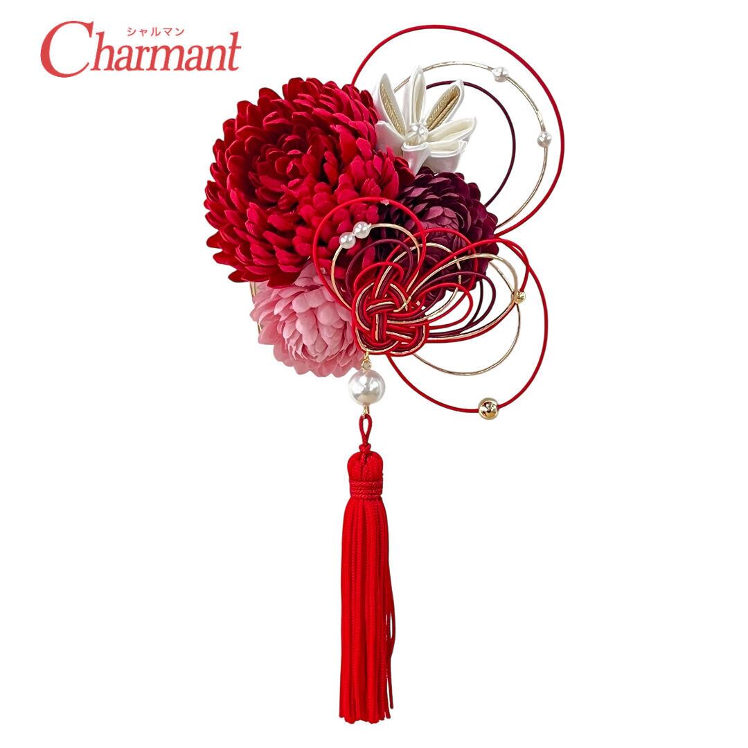 【500-932】髪飾り コーム ぽんぽん菊 つまみ細工 水引 成人式 結婚式 卒業式 大人着物 街歩き