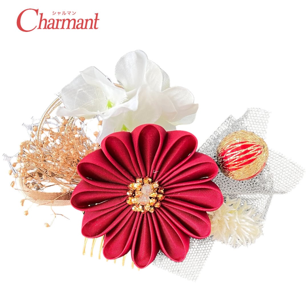 【500-928】髪飾り コーム 彩り つまみ細工 かすみ草 成人式 結婚式 卒業式 大人着物